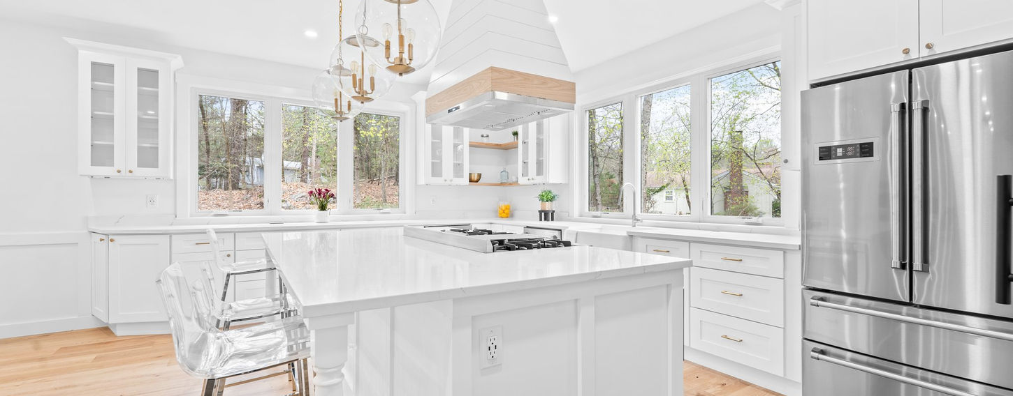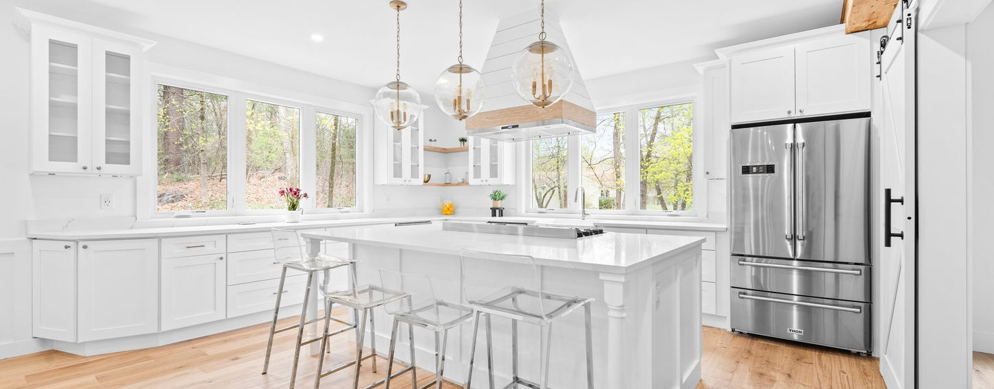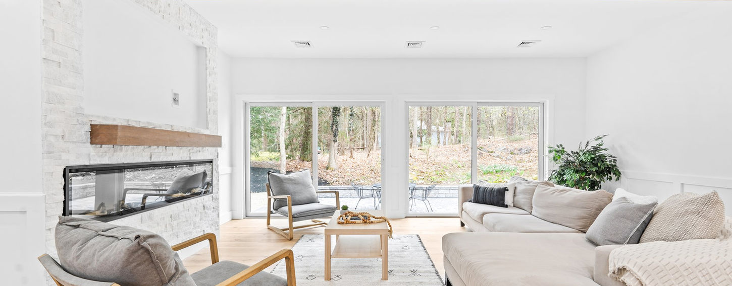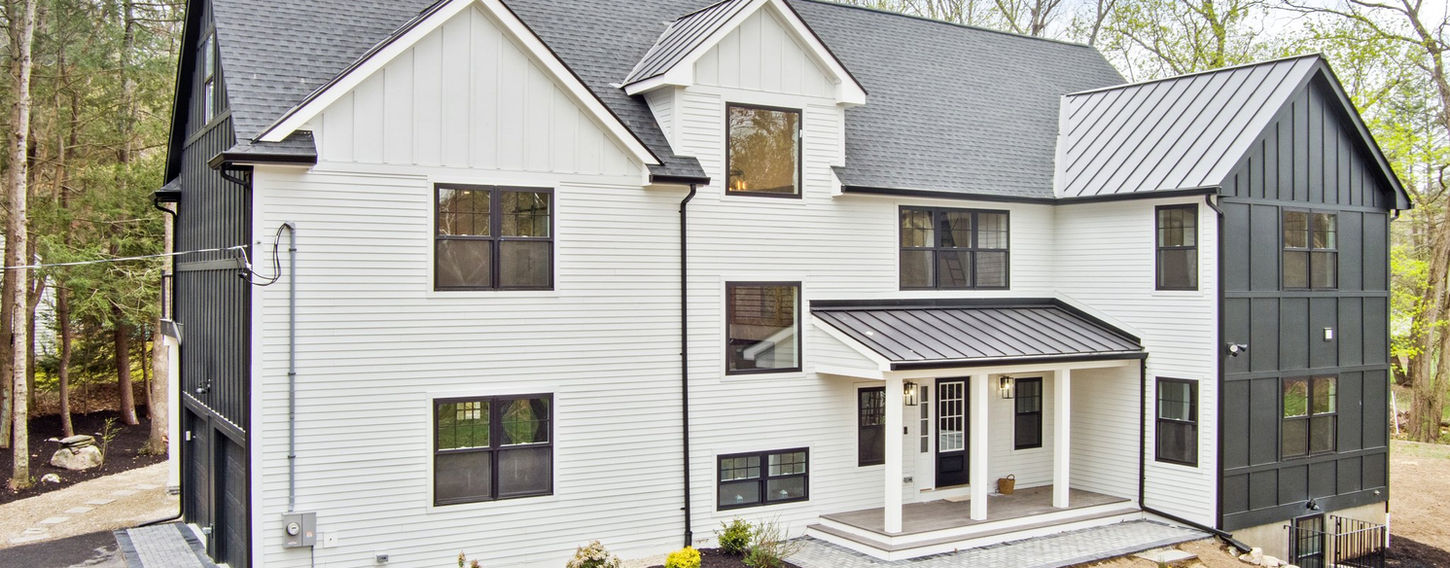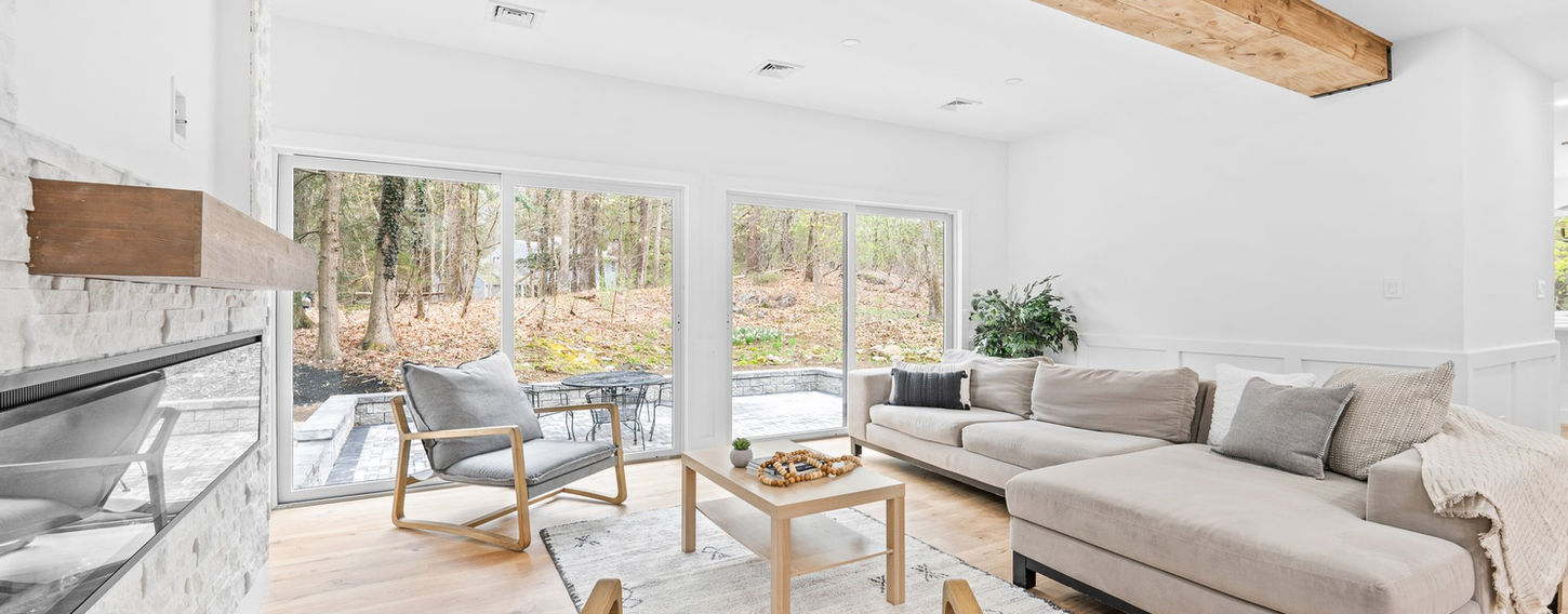 The architectural design flourishes at 25 Meadowbrook rd, Dover MA throughout the 4,200 square feet of sprawling interior space complete with 4 bedrooms and 3 bathrooms, a family room, living room, and bonus room. The custom kitchen is outfitted with top-of-the-line cabinetry, a countertop that matches its beautiful waterfall island, stainless steel appliances, and a custom-built pantry. Sliding walls of glass vanish opening to the large private backyard with luscious landscaping. The luxurious master suite extends outside with a beautiful balcony overseeing the backyard.